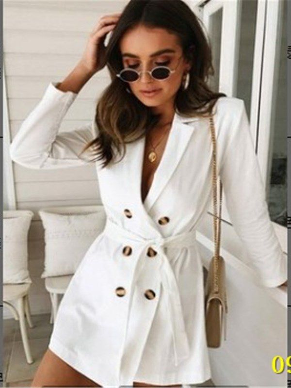 Snörningsknapp För Kvinnor Med Snörning I Kavaj Lång Ärm Trenchcoats