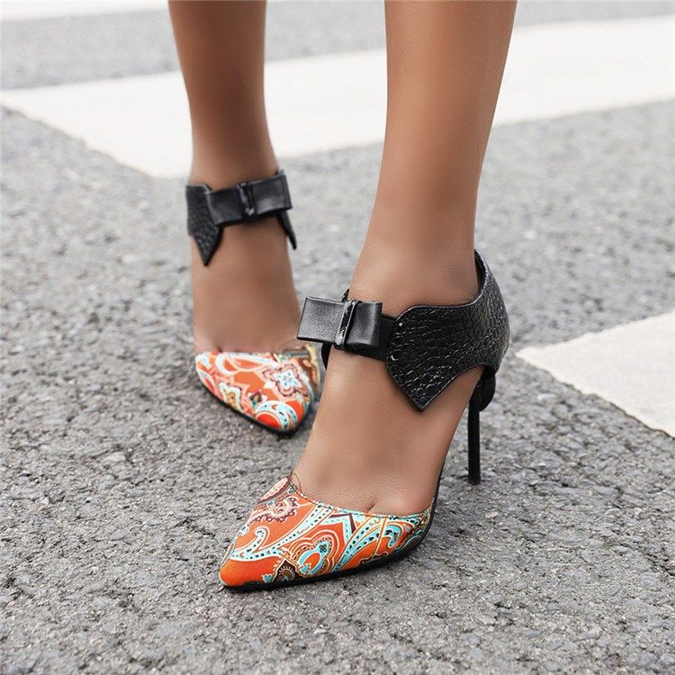 Spetsig Tå Slip-on Stiletto Heel Thread Dam Sandaler