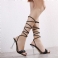 Square Toe Spool Heel Snörning Snörning Upp Dam Sandaler
