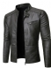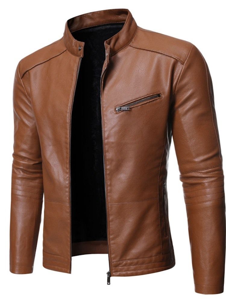 Stand Collar Plain Standard Slim Zipper Leather Jacket För Män