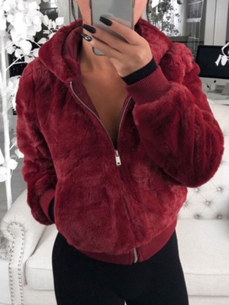Standard Jacka Med Huva Vanligt Dragkedja Löst Konstläder