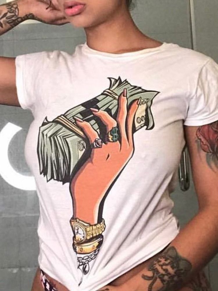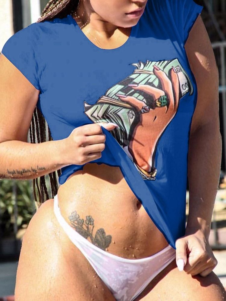 Standard Kortärmad Rundhalsad T-shirt För Kvinnor