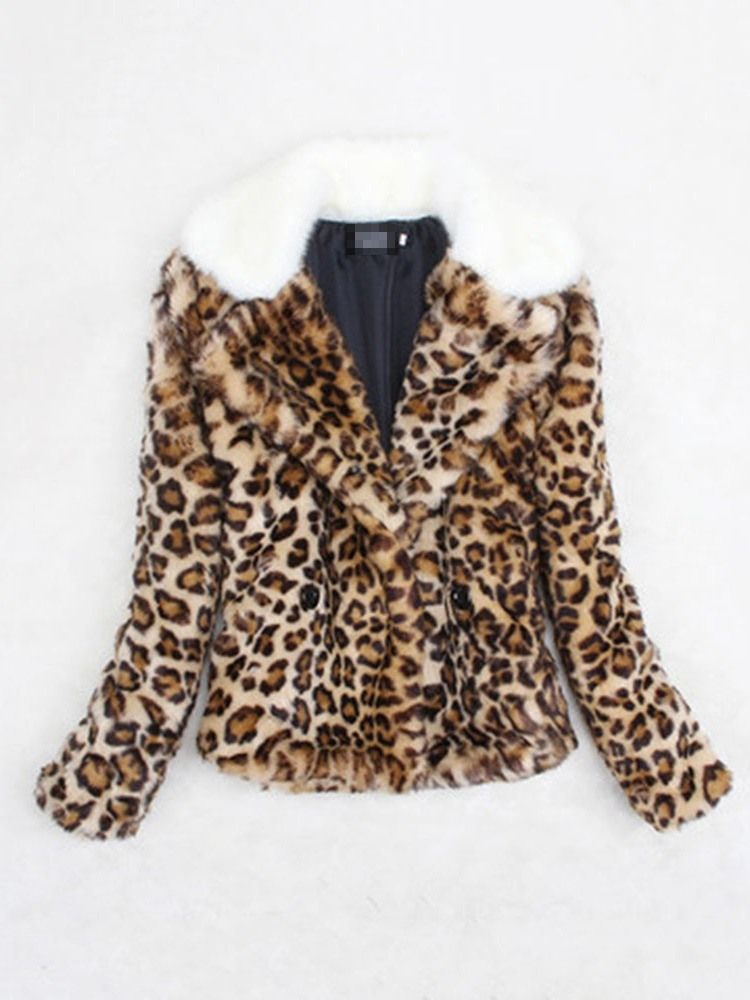 Standard Leopard Slim Tjock Damjacka I Fuskpäls