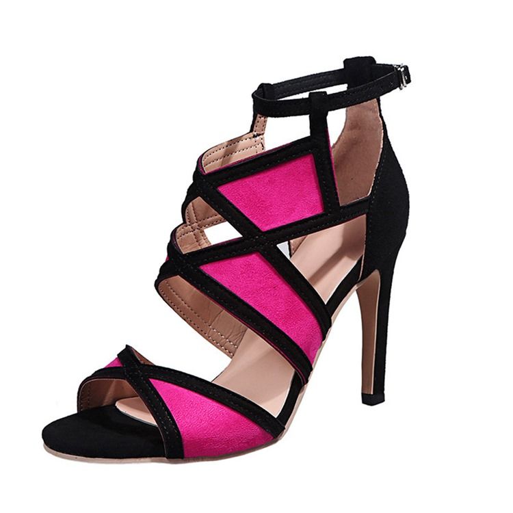 Stilettklack Open Toe Buckle Color Block Dam Sandaler