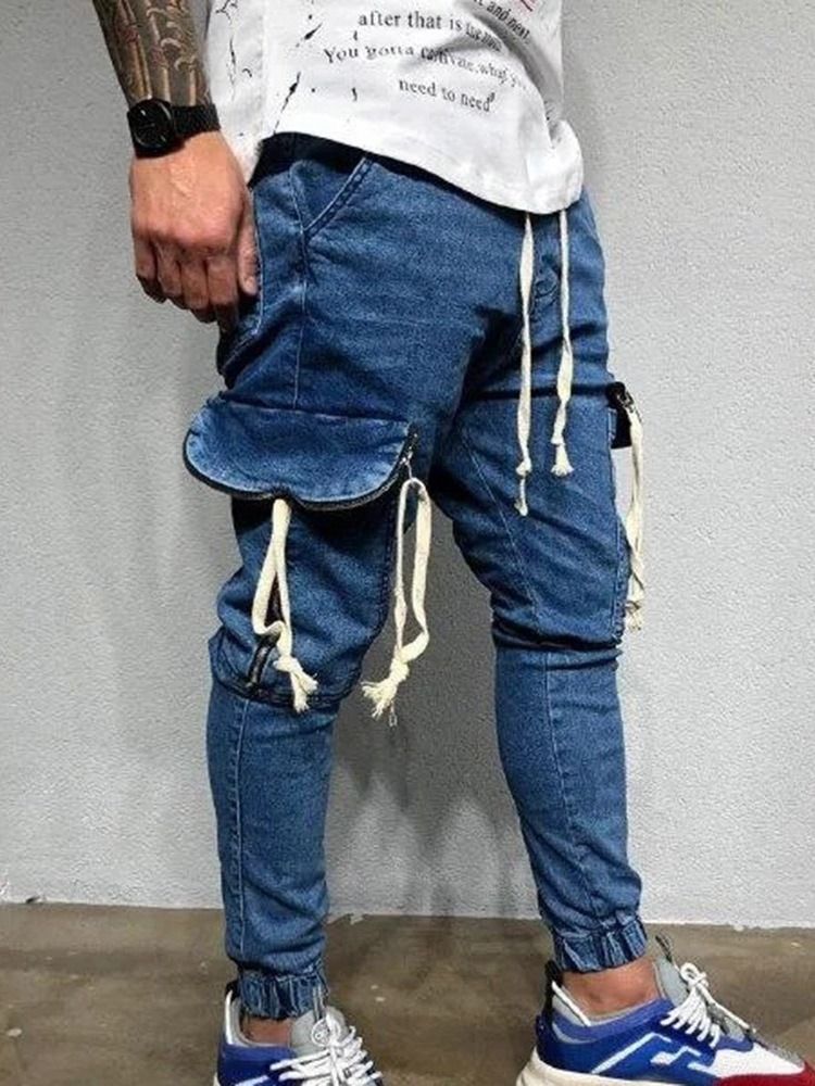 Thin Pencil Pants Pocket Zipper Korean Men's Jeans