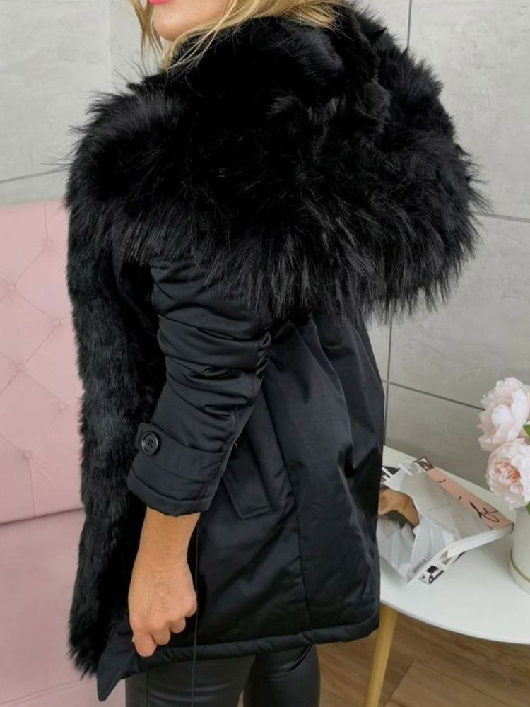 Tjock Enbröst Patchwork Mellanlång Damjacka I Bomull För Kvinnor