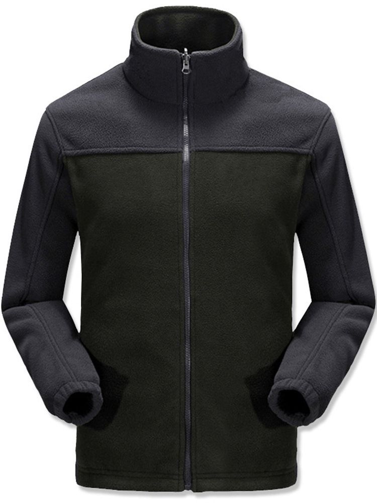 Tjock Stil Color Block Stand Collar Casual Herrjacka