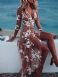 Trekvartärmad V-ringad Fotledsklänning Med Ankellängd