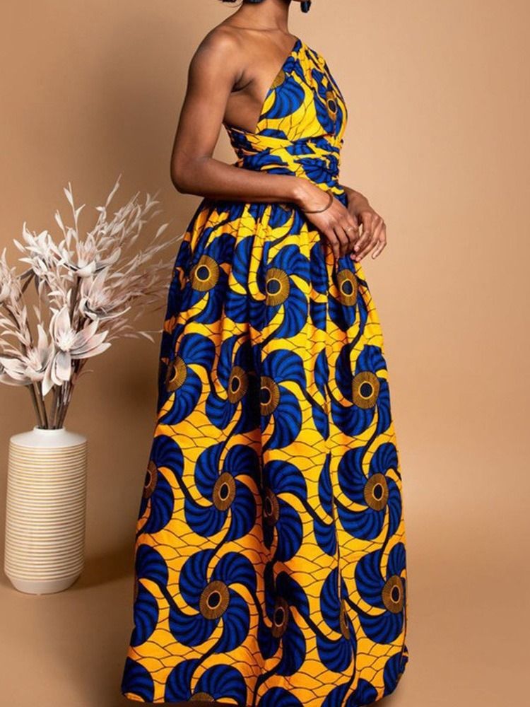 Tryck Ärmlös Golvlängd Vintage A-linjeklänning För Kvinnor