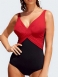 V-ringad V-ringad Färgblock Med Veckad Badkläder För Kvinnor