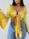 V-ringning Flare Ärm Vanligt Långärmad Kort Damblus