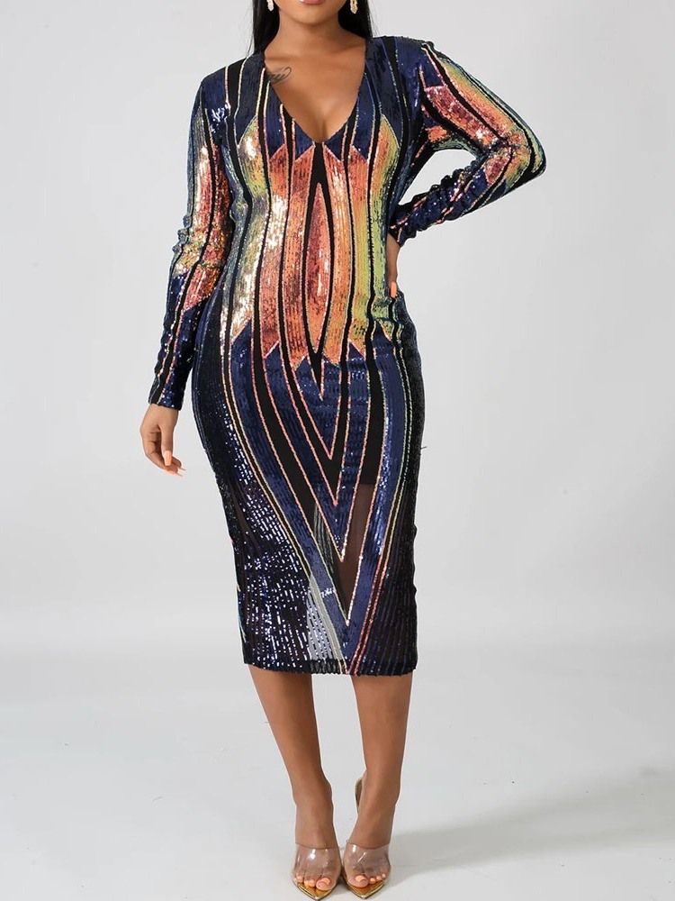 V-ringning Långärmad Paljetter Med Midja I Midjan