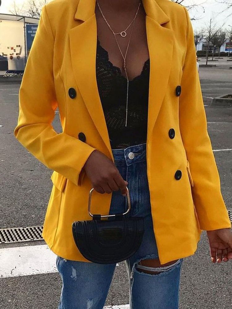 Vanlig Dubbelbröst Långärmad Höst Regular Casual Damblazer