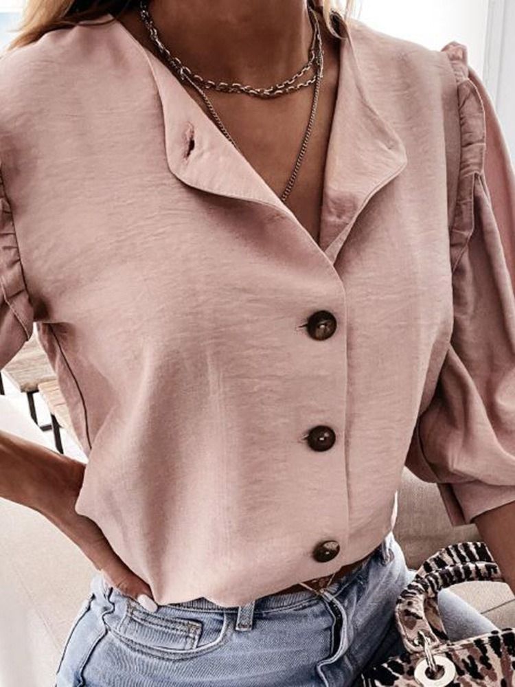 Vanlig Knapp Nio Poäng Ärm Standardblus För Kvinnor
