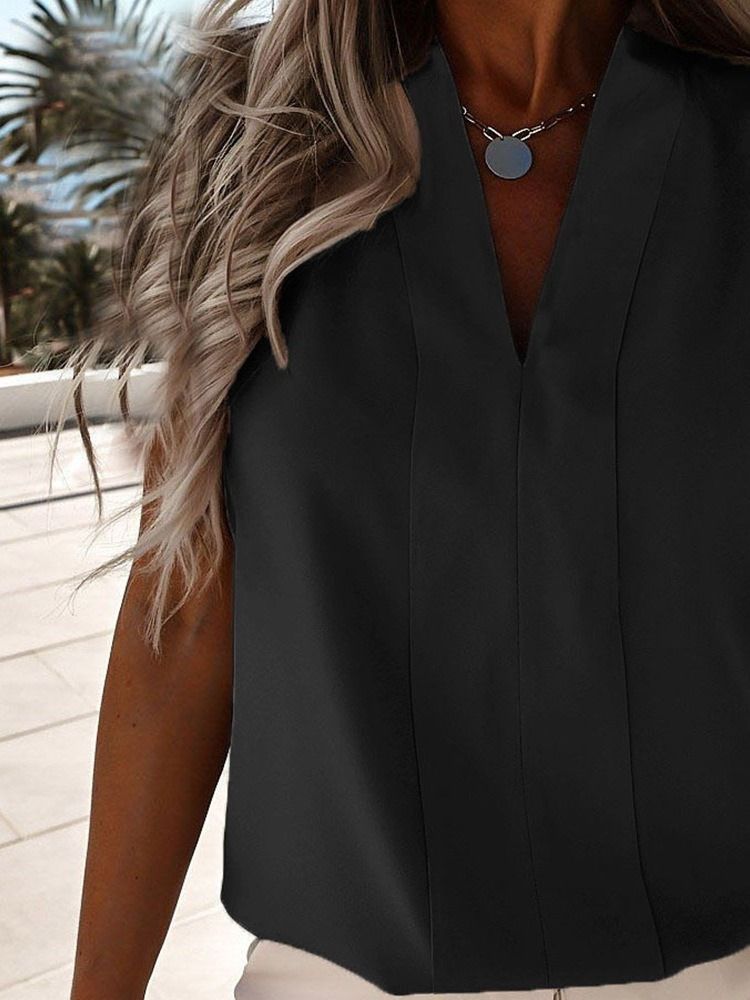 Vanlig V-ringad Ärmlös Standardblus För Kvinnor