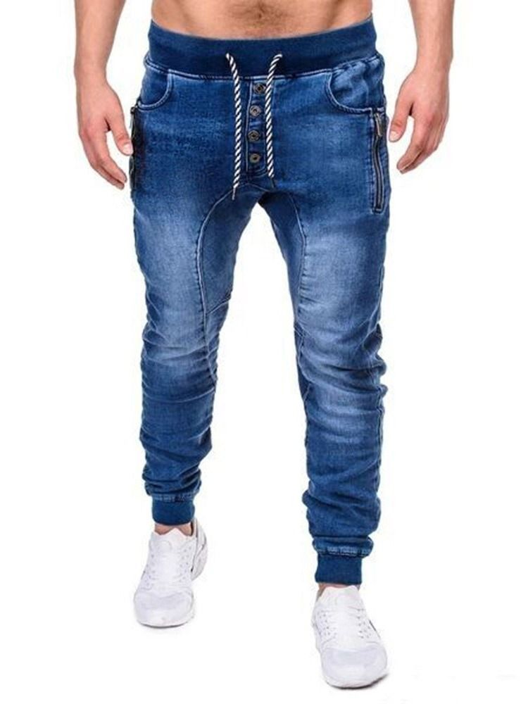 Vanliga Dragkedjebyxor Med Dragkedja Casual Jeans Med Snörning För Män