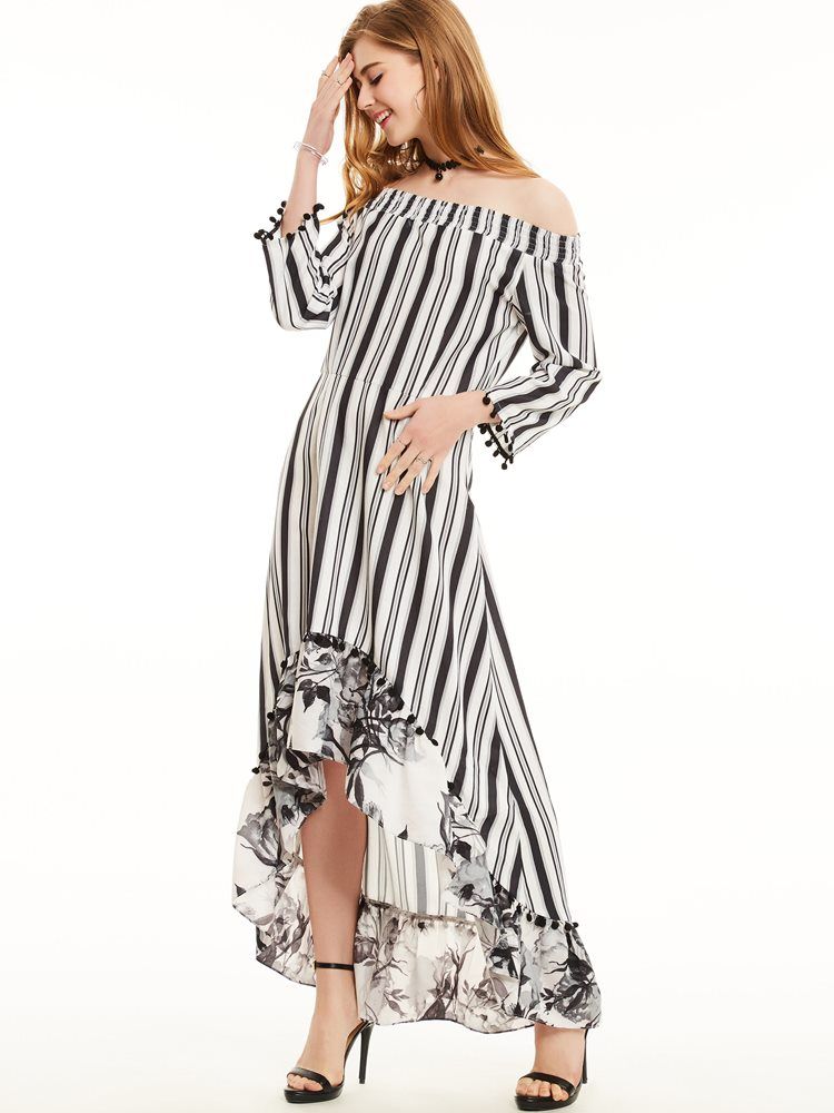 Vertikal Randig Maxiklänning Med Randigt Tryck