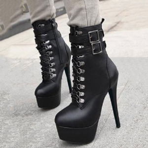 Kvinnors Platform Peep Toe Snörning Med Högklackade Stövlar