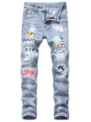 Mäns Utskriftslås Med Dragkedja Casual Jeans
