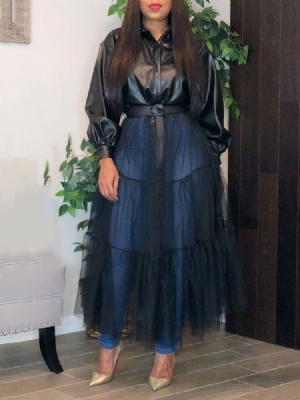 V-ringad Slim Patchwork Pu-jacka För Kvinnor