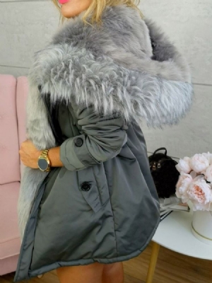 Faux Fur Patchwork Tjock Lång Dam Bomulls Vadderad Jacka